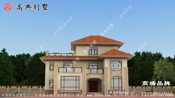 欧式农村三层自建房设计,旋转楼梯户型造型美观,透明舒适经典欧式风格,橘色坡屋顶尖顶设计,线条清晰入口设置玄关,起到过渡作用...