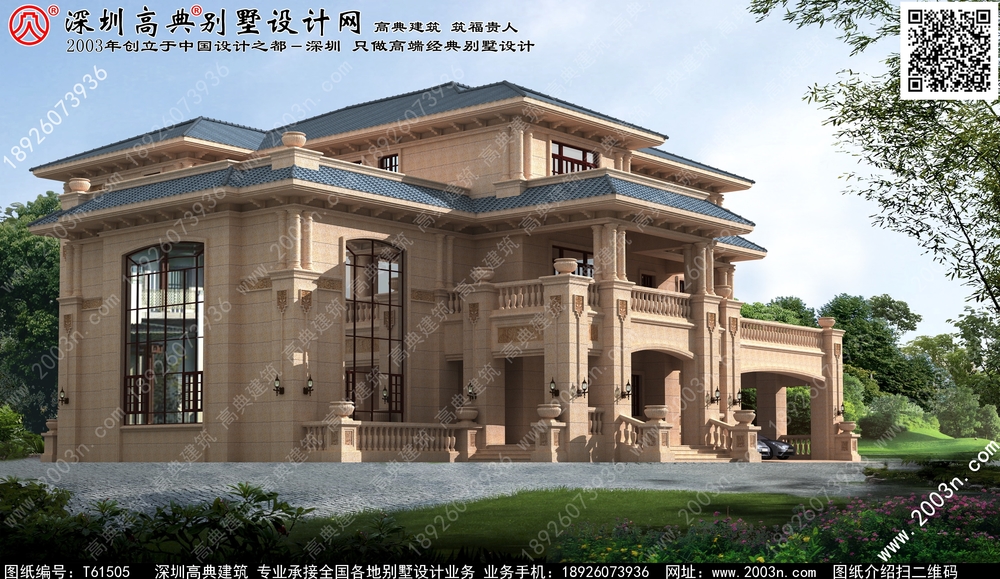 欧式石材三层别墅外观奢华大气